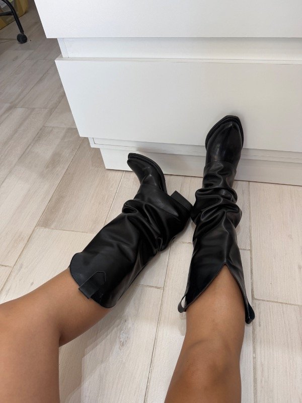 Esta bota es pura tendencia. Confeccionada en eco cuero suave y flexible, su diseño slouch (caña caída con pliegues naturales) genera un look moderno, relajado y súper fashionista, ideal para levantar cualquier outfit sin esfuerzo.