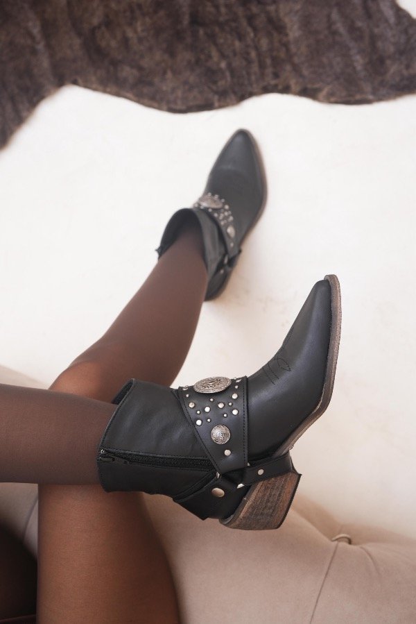Los detalles en tachas y apliques metálicos de zamak le suman actitud y personalidad, convirtiéndolas en EL protagonista de cualquier outfit ✨ Y lo mejor: su cinto desmontable te permite usarlas de dos formas, adaptándolas a tu estilo según el día 😏
