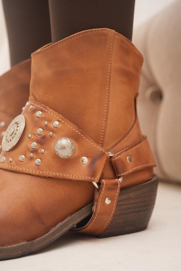 Confeccionadas en 100% cuero, tienen ese acabado suave y auténtico que mejora con el uso, mientras que su base artesanal y taco foliado de 5 cm te dan la altura justa para estilizar sin perder comodidad 🙌
