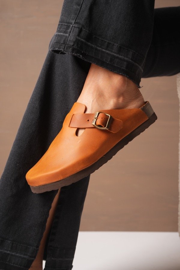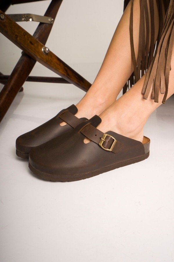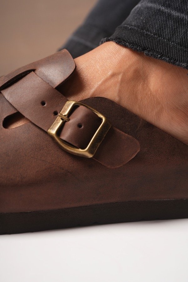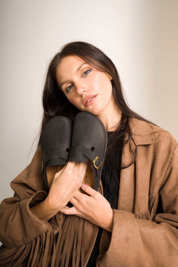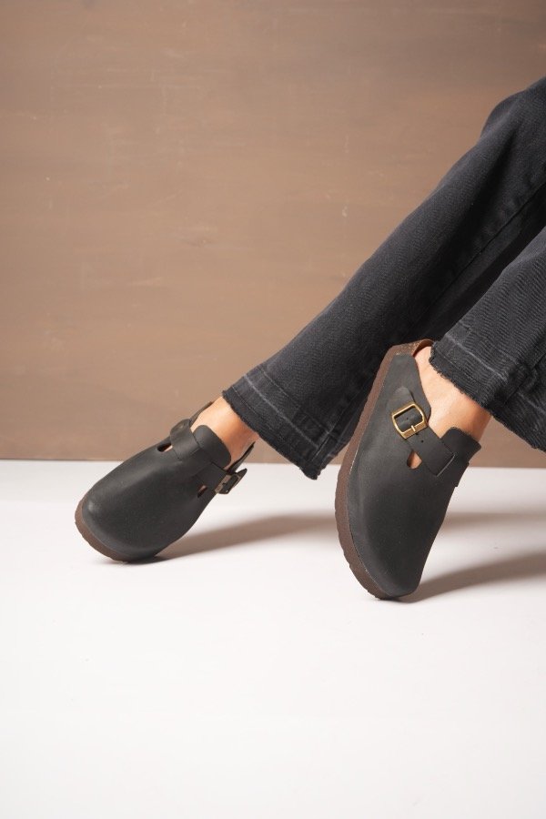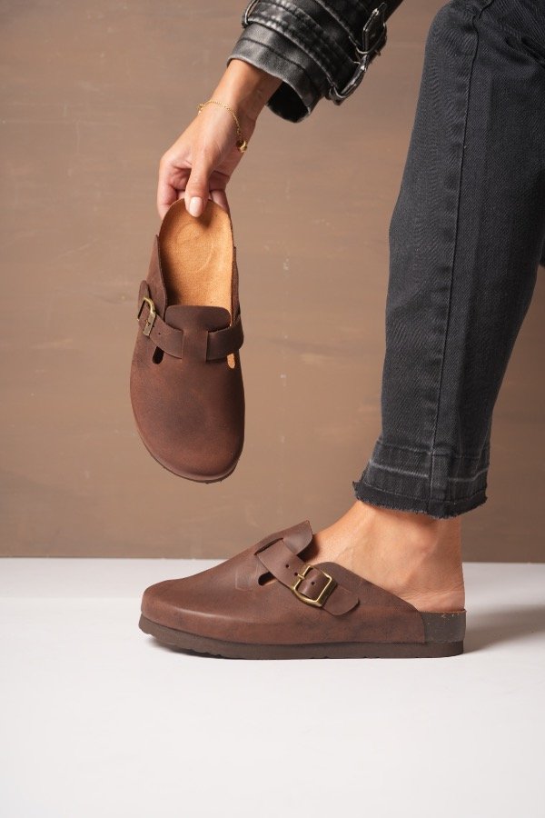 Nuestro zueco de cuero genuino combina diseño minimalista con un carácter fuerte y atemporal. La hebilla lateral aporta ese detalle protagonista que transforma un básico en un imprescindible.